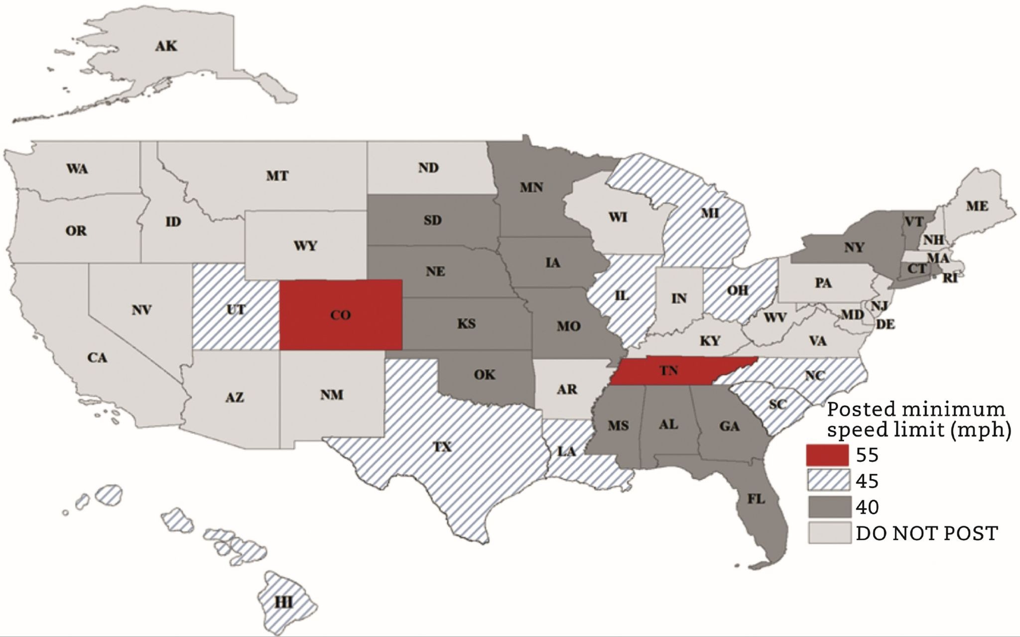 Many interstate highways have minimum speed limits, too. These usually fall between 40 and 50 mph. Driving too slowly can be dangerous because it disrupts the flow of traffic. Keeping your speed within the posted range helps everyone stay safe.
