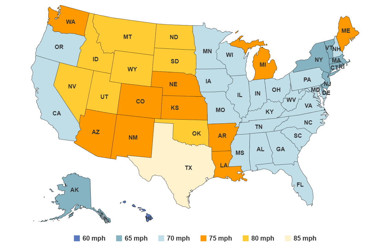 Now, let's talk about the speed limits you'll probably see on the big interstate highways.