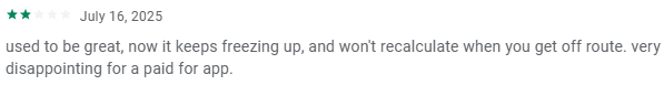 Where Trucker Guide stands out is in offline reliability. Once you are using it, turn-by-turn navigation continues even with no signal. Low-bridge and restricted-road data stays active, and planned POIs remain visible. Trucker Guide will even alert you when you’re offline, but your turn-by-turn directions won’t suddenly vanish.