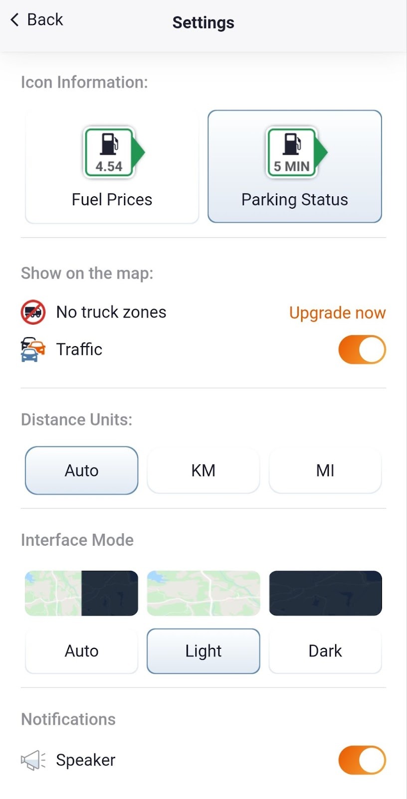 Trucker Guide also offers an automated day/night mode (Dark Mode) that kicks in for night driving, providing a darker interface to reduce glare and eye strain. Trucker Path has a similar feature, too, but it comes at an extra cost there, while Trucker Guide includes it as part of the experience.