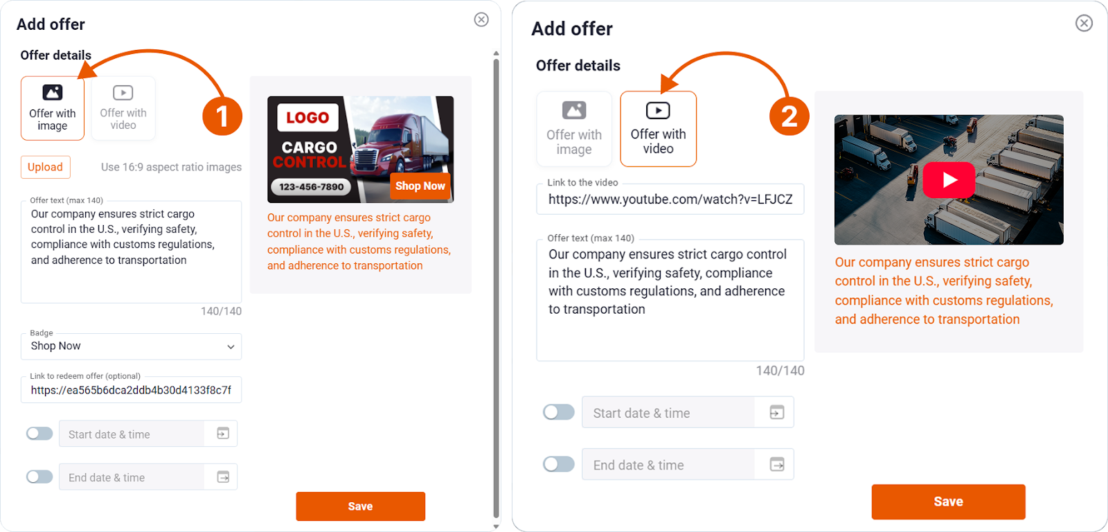 Trucker Guide supports rich media on your company profile to advertise special offers.