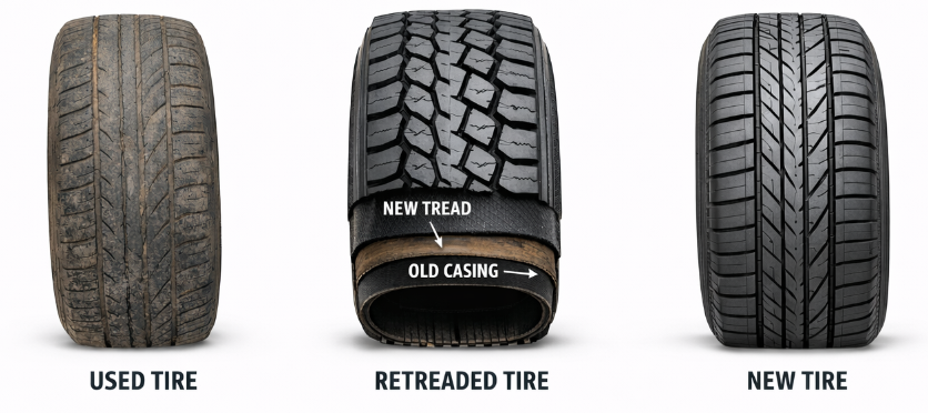 While these used tires are sold as-is, retreaded tires, by contrast, involve a deliberate process: a worn casing is stripped or ground down, and a fresh tread is professionally molded onto it. This gives commercial fleet tires a “second life”, making them engineered replacements rather than just reused pieces.