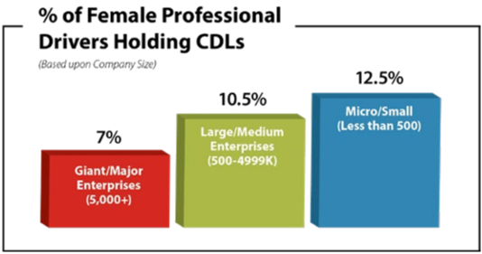 Smaller carriers with fewer than 500 employees report a higher share of female drivers, around 12.5 percent, while larger fleets average closer to 7 percent. This suggests that smaller operations may offer more accessible entry points and supportive environments for women entering the profession.